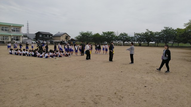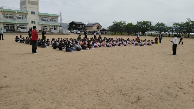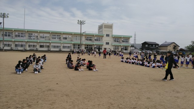避難訓練を行いました。今年度、初めてのグラウンドへの避難でしたが、みんな静かにすばやく避難できました。