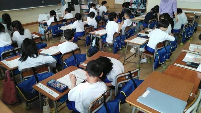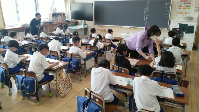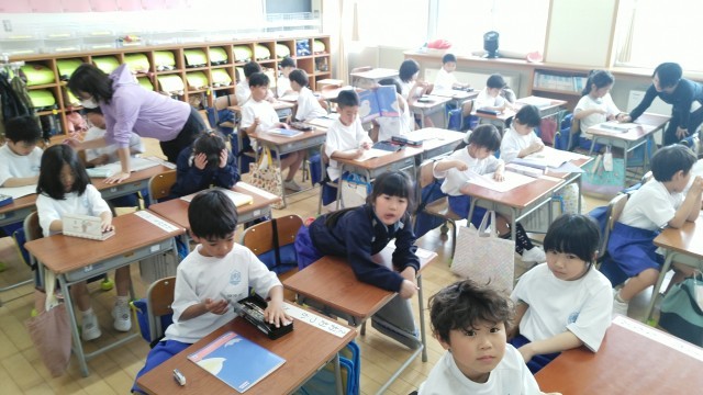 1年生は、5時間目に連絡帳をかいていました。かけた人から先生にチェックしてもらっていました。