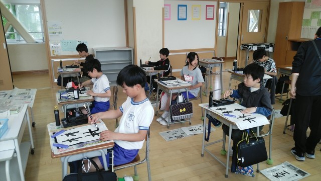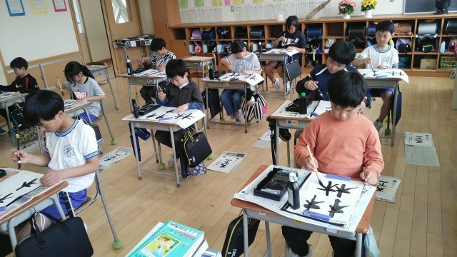 4年生の5時間目は、書写の学習でした。「林」という漢字をかいていました。