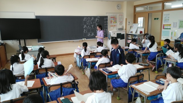 5月12日(月) 1年生 「あ」 公開日 2025/05/12 更新日 2025/05/12 1年 1年生の3時間目は、国語科の学習でした。「あ」のつく言葉を集めていました。「あいす」「あかだん」「あおだん」…。