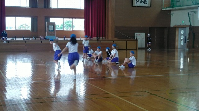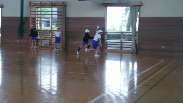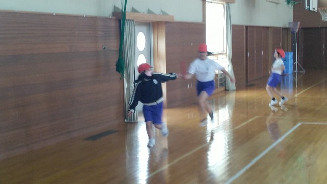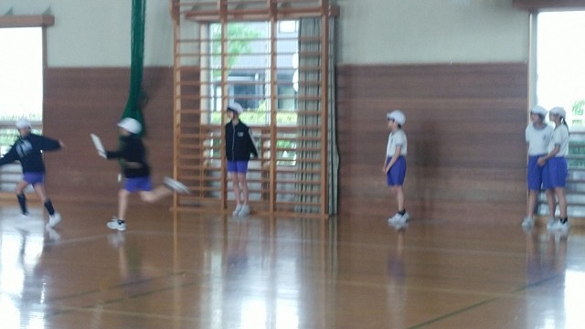 6年生の3時間目は、体育科の学習でした。リレーのバトンパスの練習をしていました。