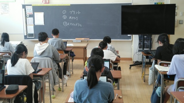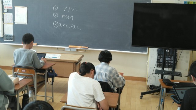 6年生の6時間目は、算数科の学習でした。プリントをしたあと、クロームブックでスマイルドリルを進めていました。