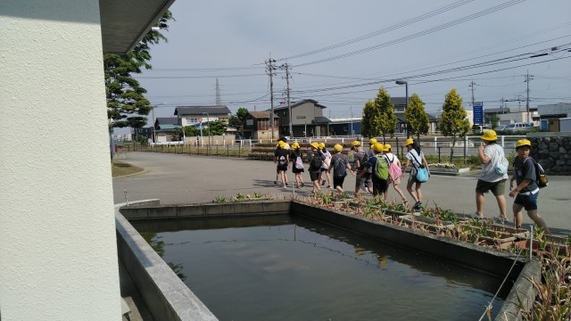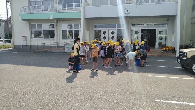 今日は、5年生が田植えの体験をする日です。今年は、布目の田んぼをお借りして体験させていただきます。5年生が学校を出発していきました。