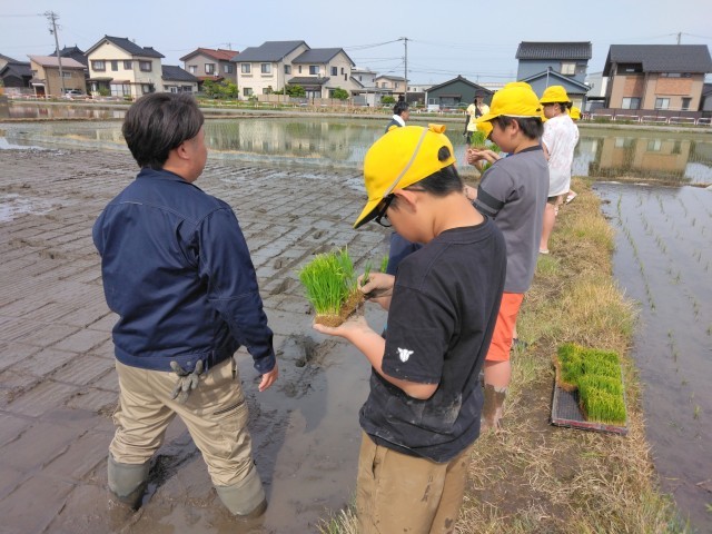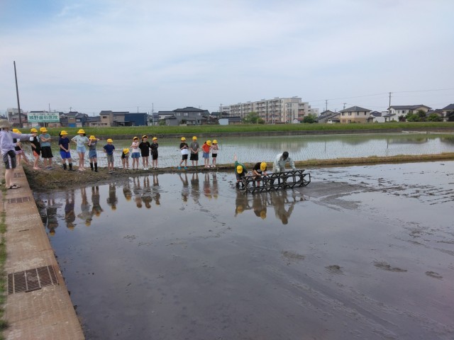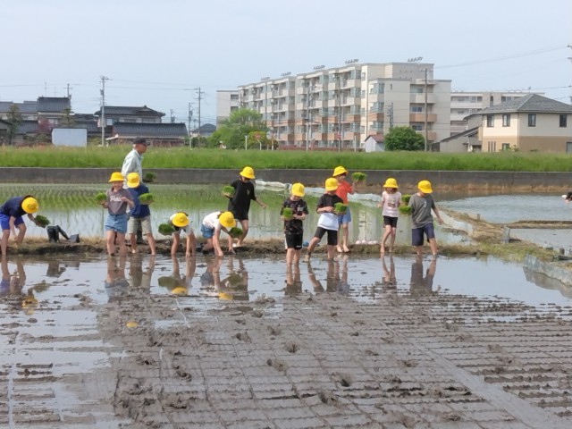 5年生は、布目生産組合のみなさん、なのはな農協のみなさんにご協力いただいて、田植え体験をしています。
