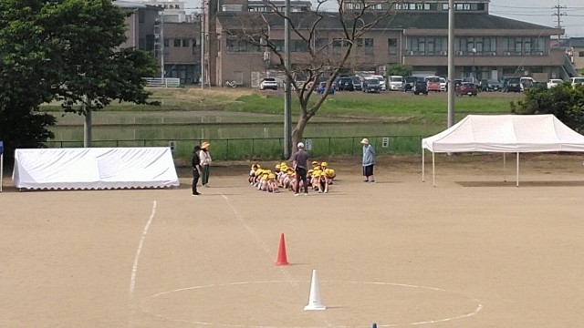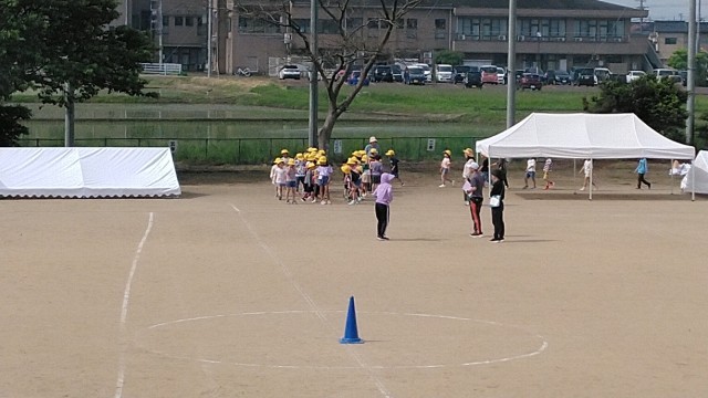 1・2年生は、1時間目にグラウンドで運動会の練習をしていました。