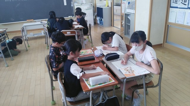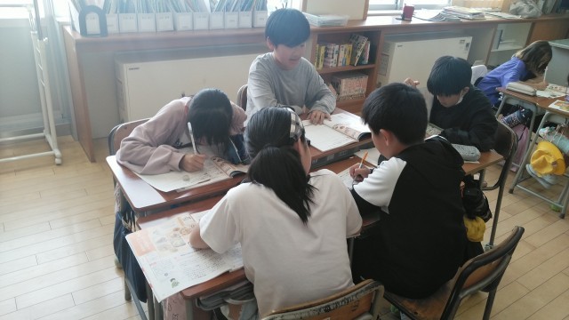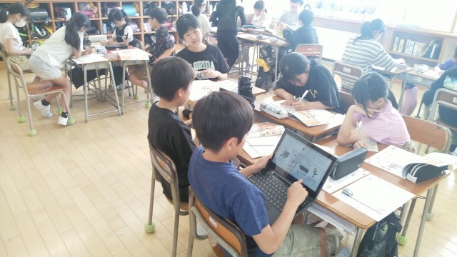 5年2組の5時間目は、家庭科の学習でした。「じゃがいも料理」について調べていました。