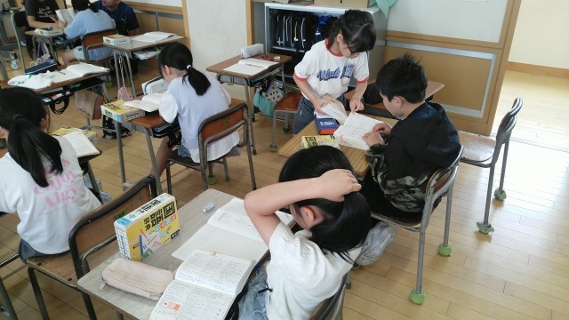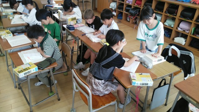 3年生の1時間目は、国語科の学習でした。国語辞典を使って「うっとり」と「ほんのり」について調べていました。