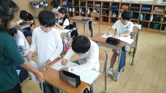 4年生の1時間目は、国語科の学習でした。テストと漢字ドリルを進めていました。
