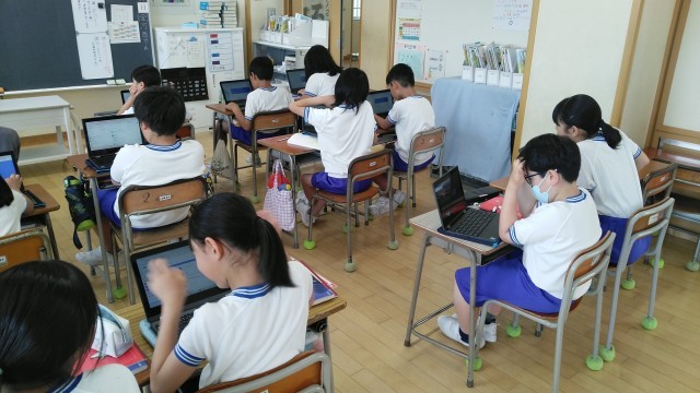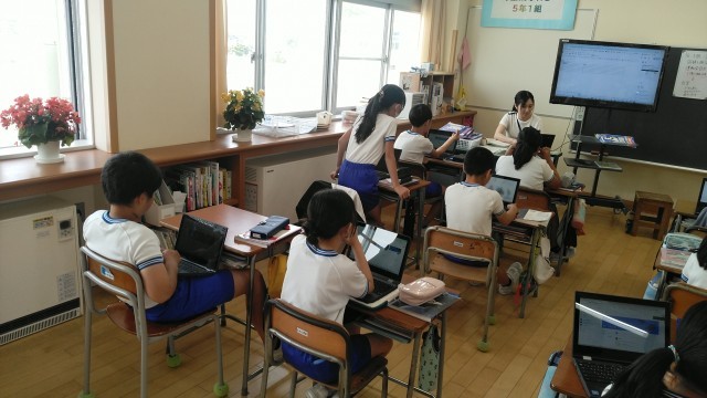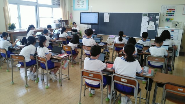 5年1組の1時間目は、国語科の学習でした。インタビューする準備を進めていました。