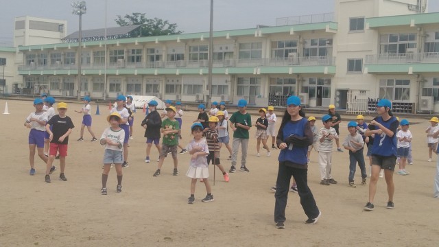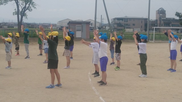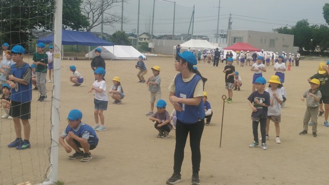 2時間目と3時間目の間の休み時間に最後の団活動の時間がありました。青団の様子です。