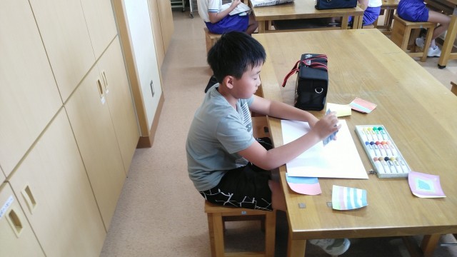 5月16日(金) 5年生 心のもよう 公開日 2025/05/16 更新日 2025/05/16 つばめ野級から つばめ野級2組の5年生の3時間目は、図画工作科の学習でした。いくつかかいた心のもようを大きい画面に再構成しようとしていました。