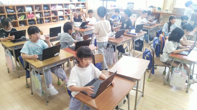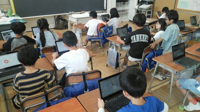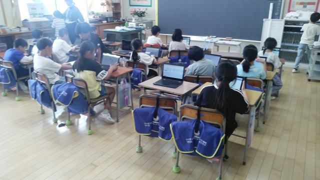 2年生は、5時間目にクロームブックを使っていました。クラスルームにつないで使っていました。