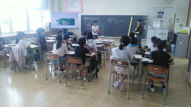 5年2組の5時間目は、算数科の学習でした。発表をみんなで真剣に聞いていました。