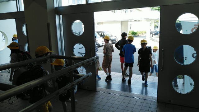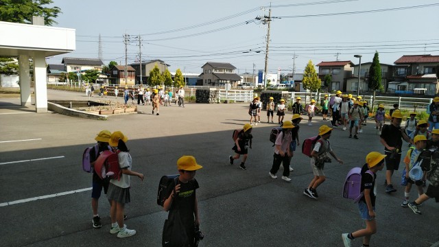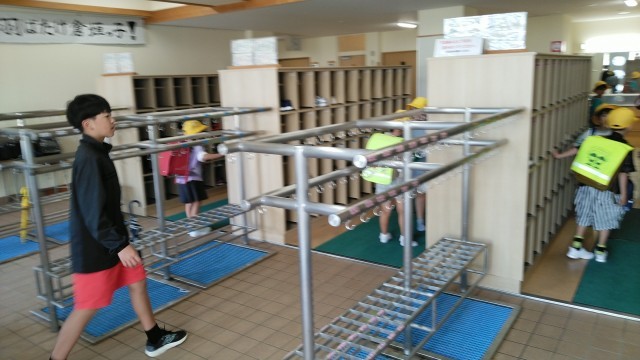 今朝の児童玄関の様子です。晴れた気持ちのよい朝です。子供たちの挨拶も元気です。