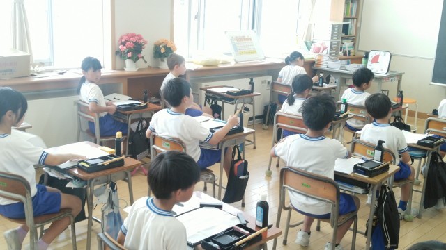 3年生の3時間目は、書写の学習でした。「二」という漢字を書いていました。