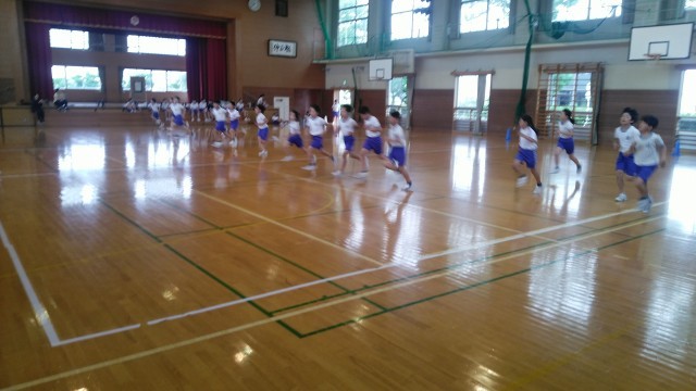 5年生は、1組と2組合同で2時間目に体育科の学習をしていました。20mシャトルランをしていました。最後まで走り続けた人の記録は、92回みたいです。