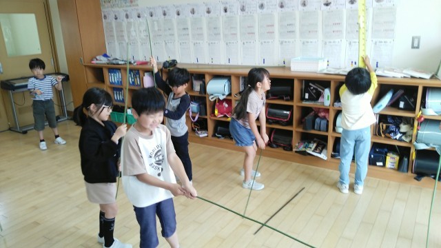 2年生の1時間目は、生活科の学習でした。先日植えた野菜の苗の支柱について話し合っていました。