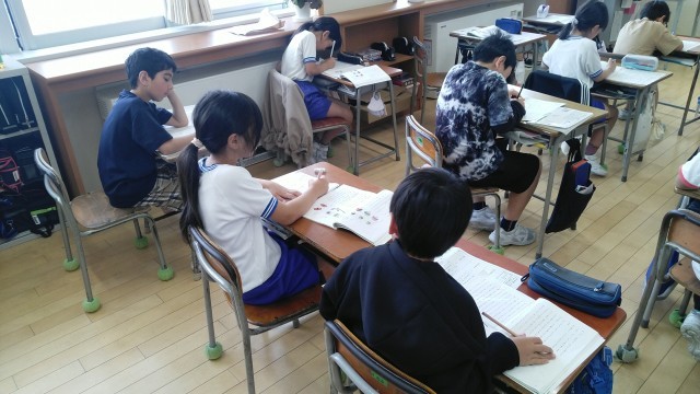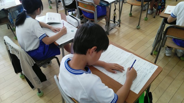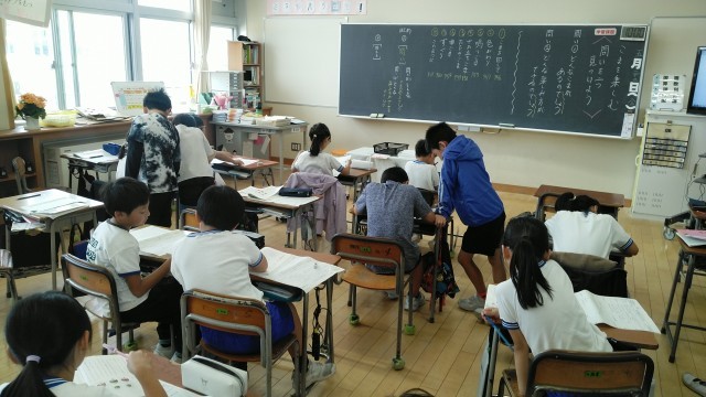 3年生の1時間目は、国語科の学習でした。「こまを楽しむ」という文章の中から問いを2つ見付けようとしていました。