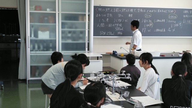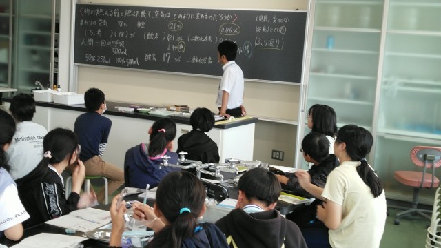 6年生の4時間目は、理科の学習でした。物が燃えた後の空気についてみんなで話し合っていました。