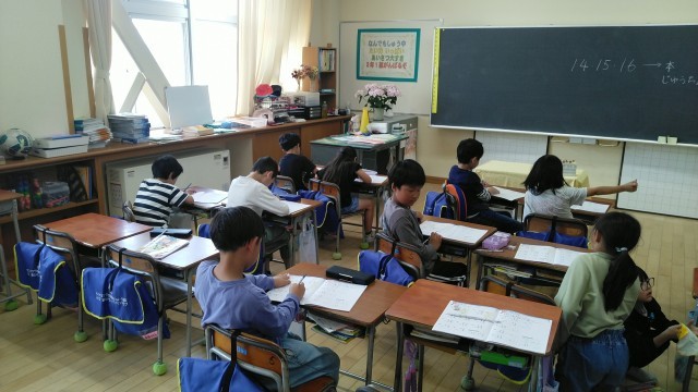 2年生の5時間目は、算数科の学習でした。プリントや算数ドリルを進めていました。