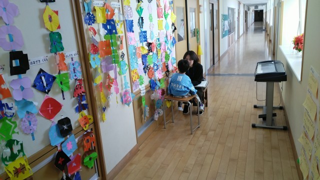 5時間目は、子供たちが自分で課題を進めていけるようにして、教育相談をする教室がいくつもありました。