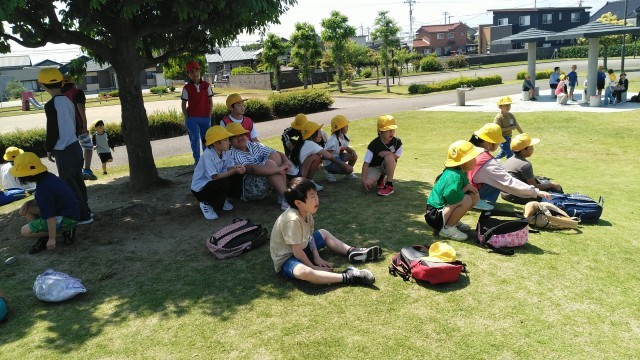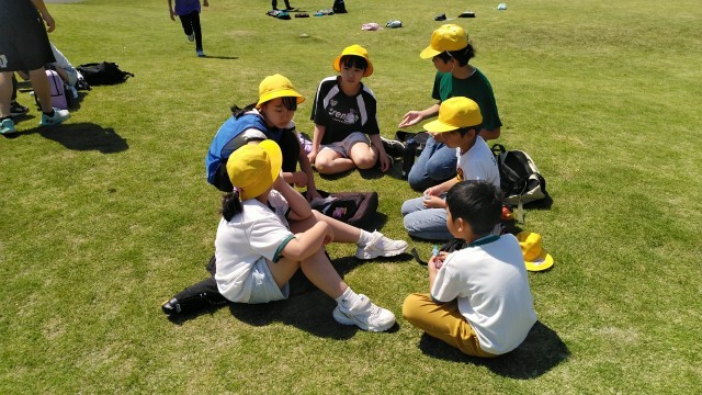 班ごとに休憩しました。1人1つあめをもらったみたいです。