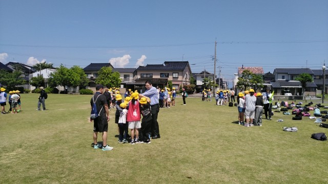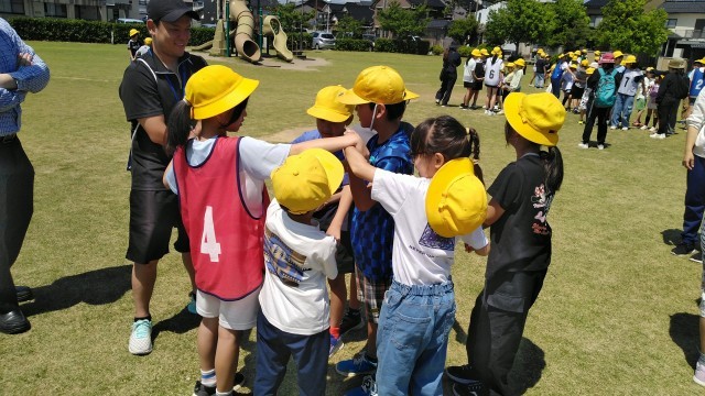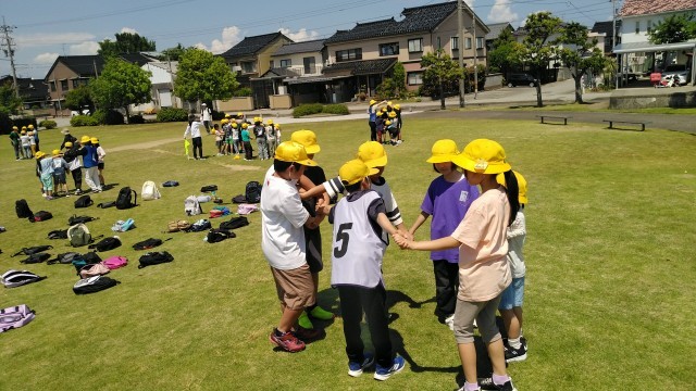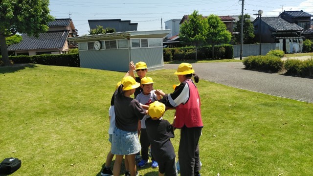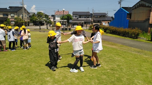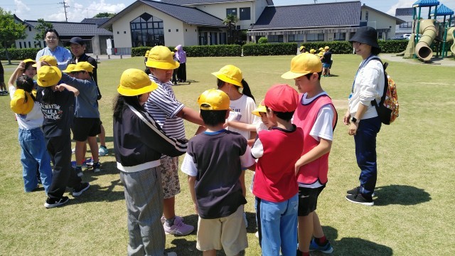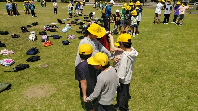 二つ目の活動は、班ごとに人間知恵の輪をしました。手をつないで楽しそうに活動していました。