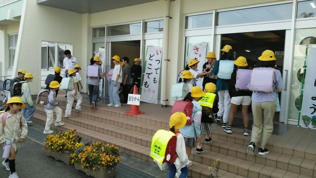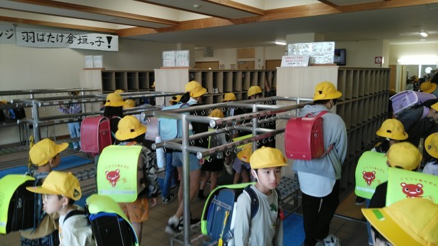 今朝の児童玄関の様子です。子供たちが元気に登校してきました。