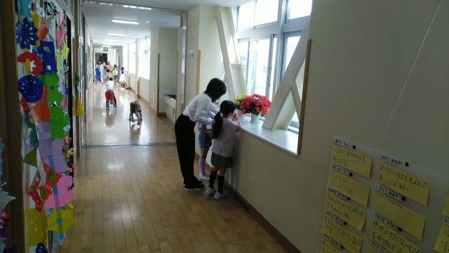 廊下の花の世話や洗面所の鏡をふいたり、グラウンドで石を拾ったりしてくれていました。