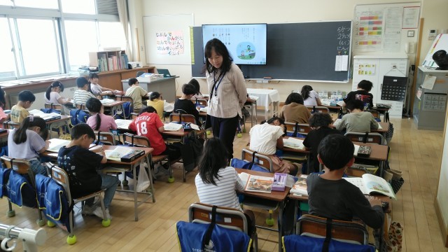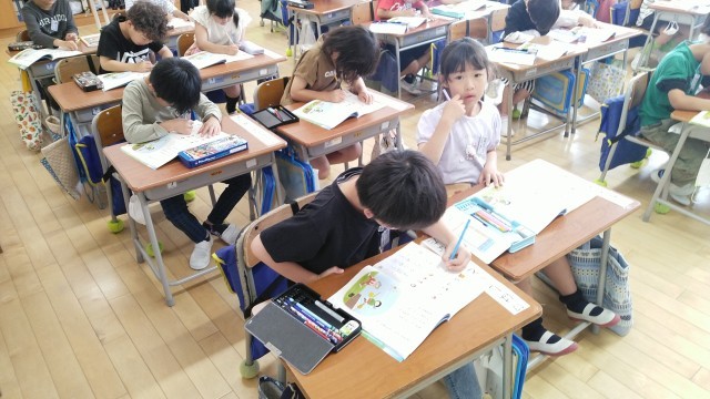 1年生の1時間目は、国語科の学習でした。おばさんとおばあさんの違いについて考えていました。