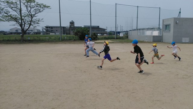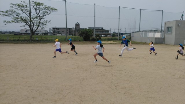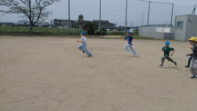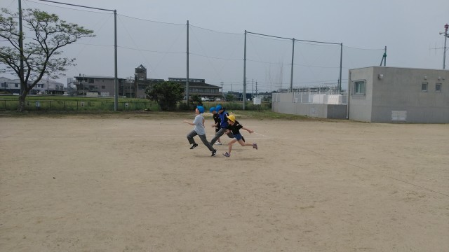 天気がよかったので、グラウンド走りました。青団の様子です。