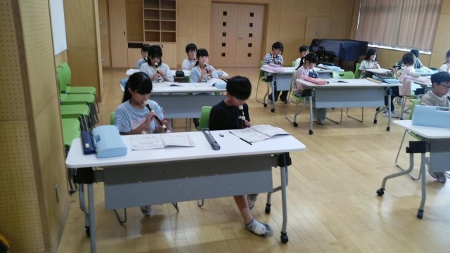 5年2組の3時間目は、音楽科の学習でした。リコーダーで小さな約束という曲の練習をしていました。