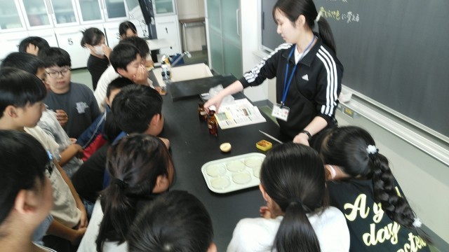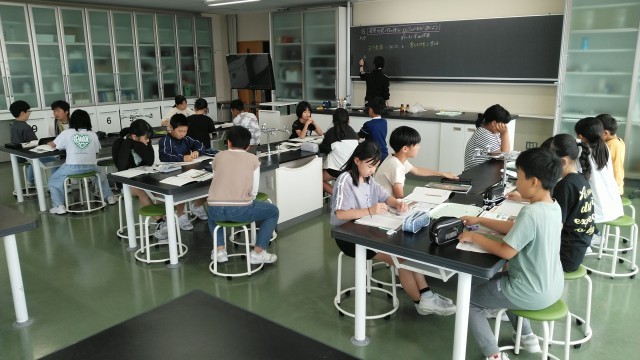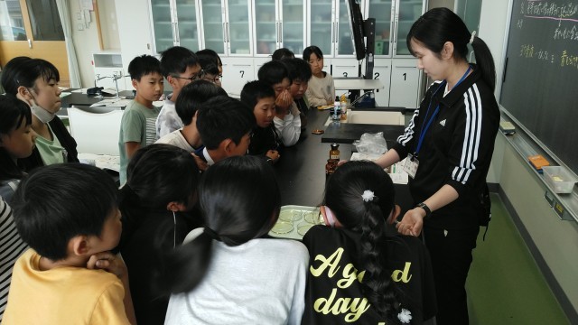 5年1組の3時間目は、理科の学習でした。じゃがいもにヨウ素液をつけてデンプンがあるかを調べていました。