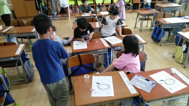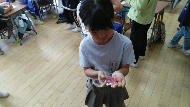 1年生の5時間目は、生活科の学習でした。あさがおの種を観察していました。