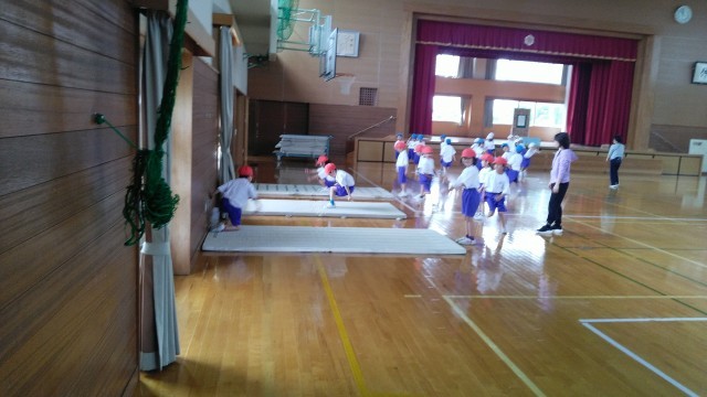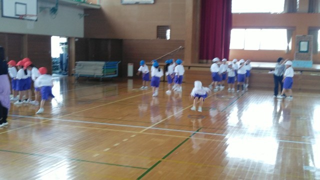 1年生の3時間目は、体育科の学習でした。立ち幅跳びの練習をしていました。