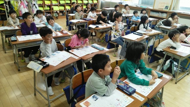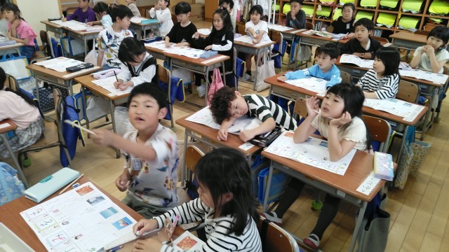 1年生の5時間目は、国語科の学習でした。「み」と「け」というひらがなの練習をしていました。