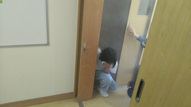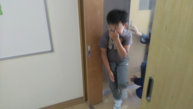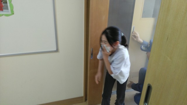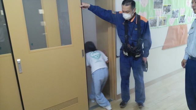 BFCバッチ授与式のあと、防火教室がありました。火災についての動画を見たり、煙中体験をしたりしました。