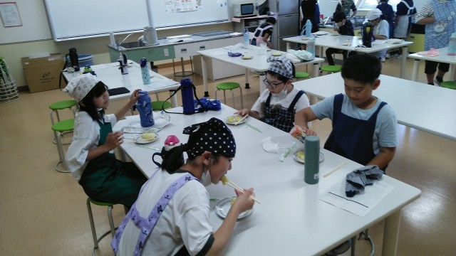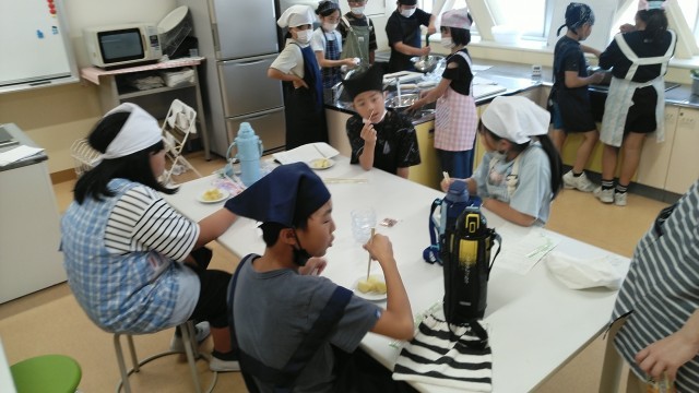 「校長先生、どうぞ。」と、5年1組の子供たちが校長室に塩コショウで味付けした茹でたじゃがいもを持ってきてくれました。とっておいしかったです。ありがとうございます。家庭科室についていくと、ほうれん草のおひたしもつくっていました。