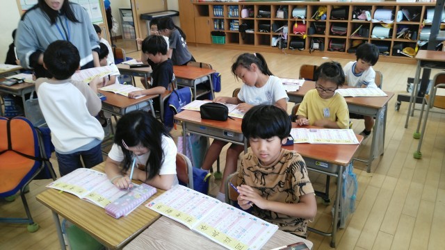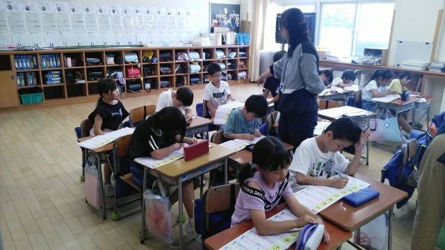 2年生の3時間目は、国語科の学習でした。「近」という漢字の練習をしていました。