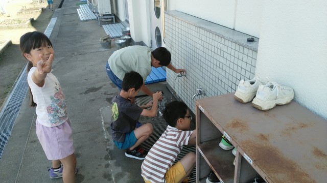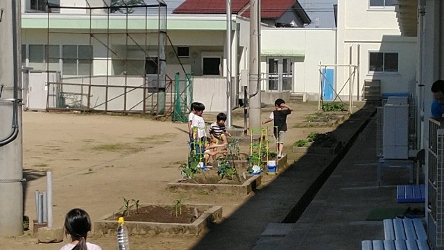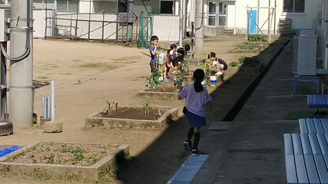2年生の1時間目は、生活科の学習でした。野菜の世話をしていました。