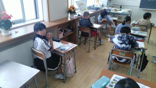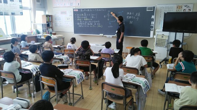3年生の3時間目は、社会科の学習でした。地図を見ながら、富山市で果樹園の多い場所が富山駅の西側であることを確認していました。