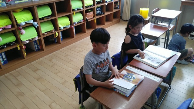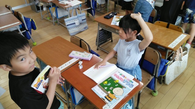 1年生は、5時間目に連絡帳を書いていました。書き終わった人から本を読んでいました。