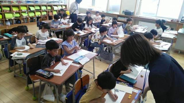 1年生の2時間目は、算数科の学習でした。どんな式になるのか考えていました。