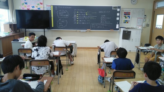 4年生の5時間目は、道徳科の学習でした。「サッカーボールをかかえて」というお話を読んで考えていました。