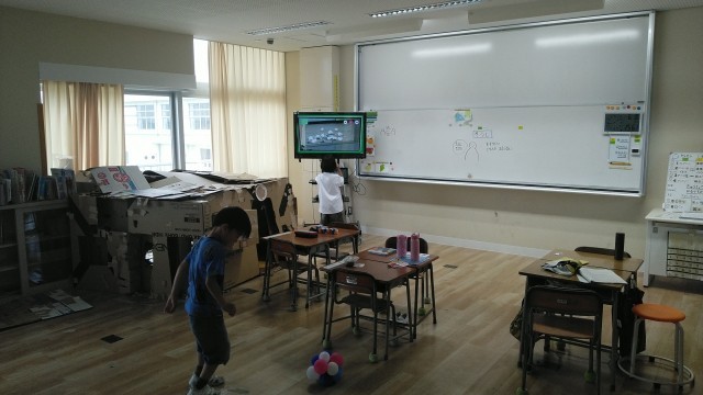つばめ野級2組の5時間目は、それぞれ活動を進めていました。ボールをけったり、動画を見たりしていました。
