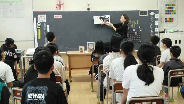 今日は、読み聞かせの日でした。上学年の日で、富山市立図書館よみきかせの会の皆さんが読み聞かせをしてくださいました。4年生教室と6年生教室の様子です。