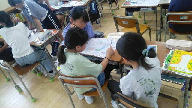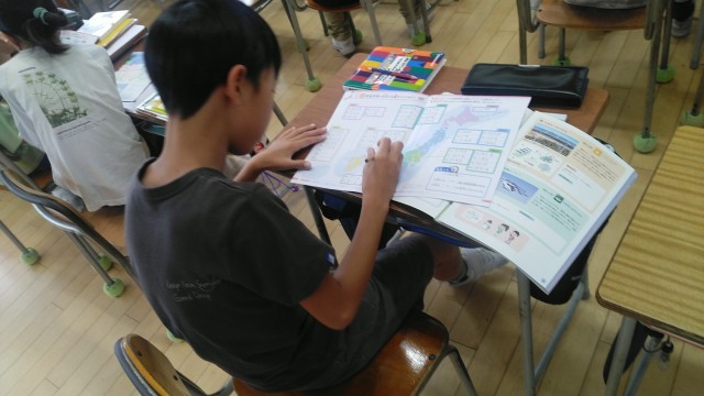 5年1組の2時間目は、社会科の学習でした。47都道府県の名前を書き込んでいました。