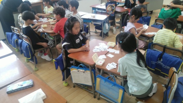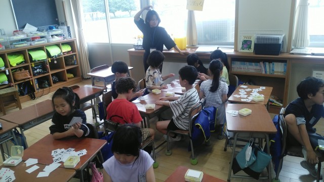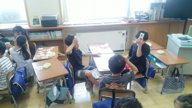 1年生の3時間目は、算数科の学習でした。数字のカードを使ってゲームをしていました。