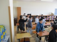 ひいらぎタイム~5時限目に、ファミリー班ごとにスポーツテストを行いました。長座体前屈の様子です。
