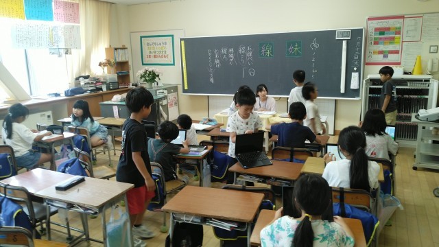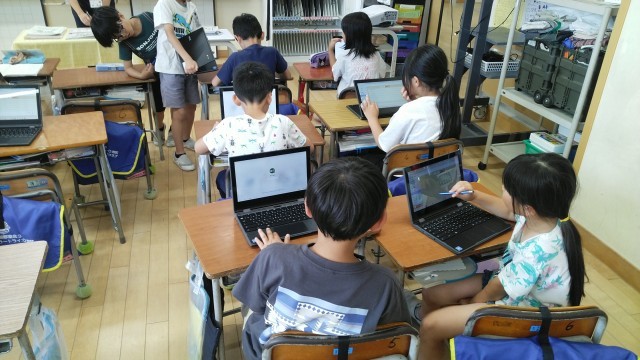 2年生の5時間目は、国語科の学習でした。妹と線という漢字の練習をしたあと、クロームブックで課題を進めていました。